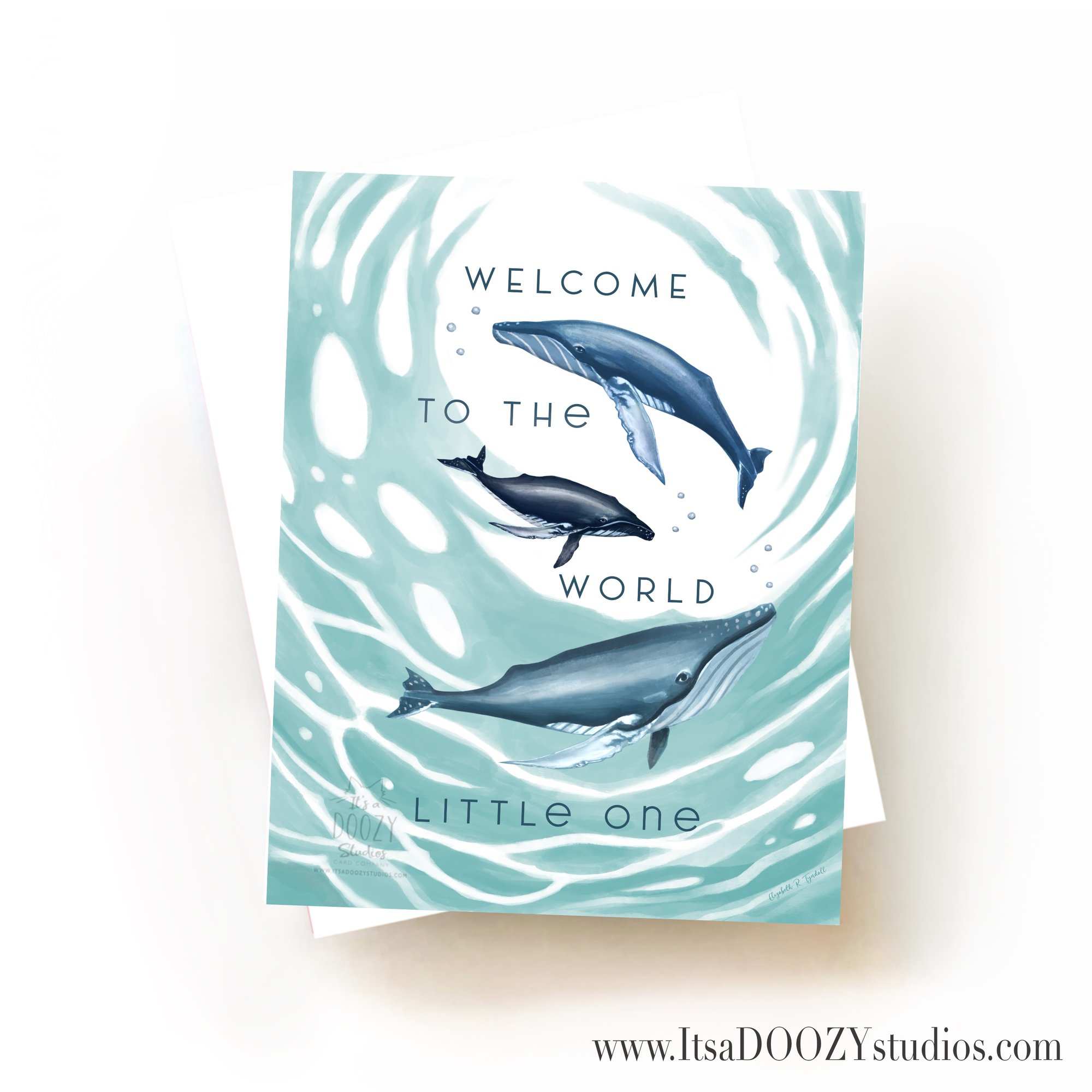 Did you know that baby whales can weigh over 6,000 pounds when born? When you think of a baby, you think small, tiny and precious, but newborn whales are giant mammals. They are so very similar to us humans though…Mother whales care and bond for their babies like we do for years. It’s essential to their survival. Welcome that little one to the world with this unique card created with love from a Mom who knows all about the bonds we share with our children and the love we have for family.