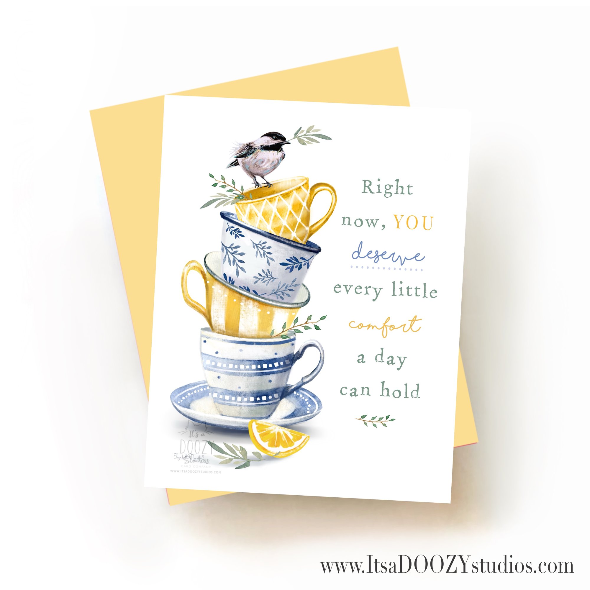 We all go through times in our lives that end up making us feel like we need a break….or maybe a nice warm cup of comfort! We all need a rest, we all need time to heal, we all need time to find peace and wholeness in ourselves and we deserve to feel comforted, so if this card speaks to you and you know someone that might be needing this little reminder, this card sounds like the perfect card for them or maybe even yourself! Also a perfect card for someone who might need a little encouragement, or for someone who’s under the weather!