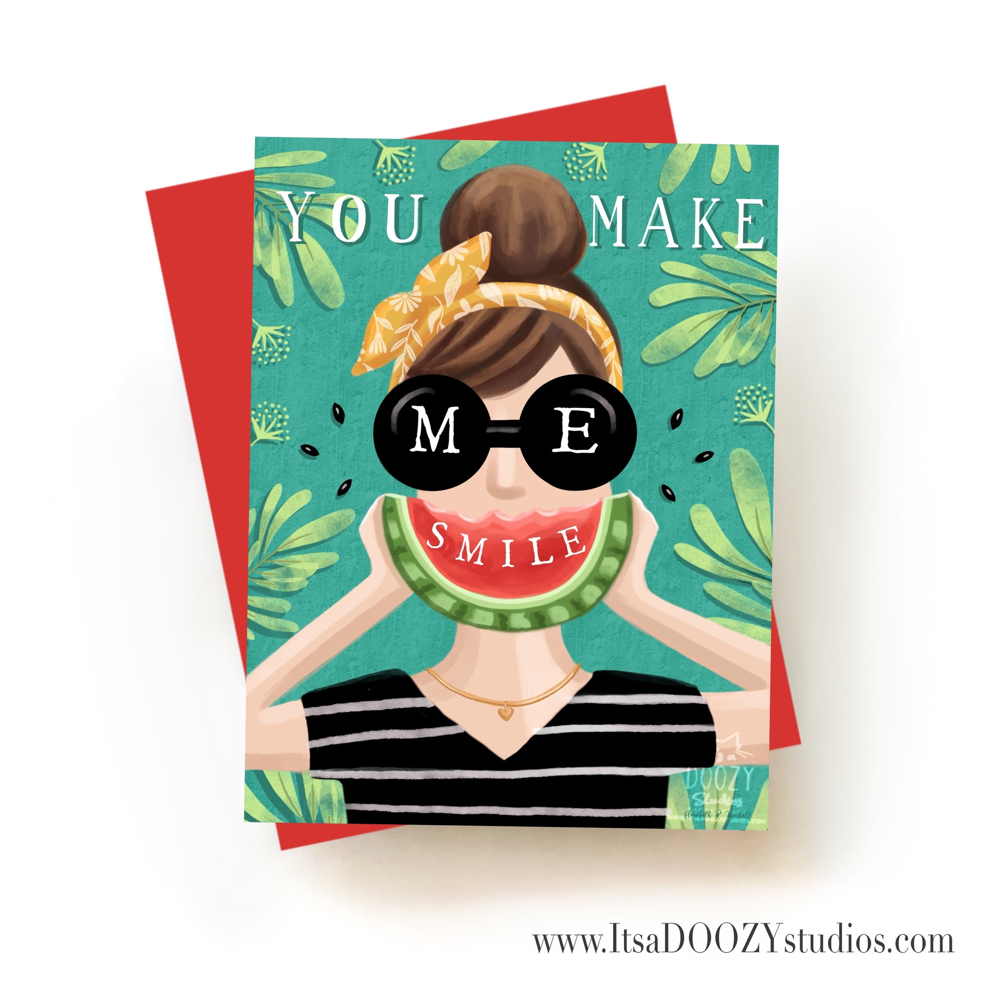 For some reason, I’ve always wanted to create a card with a girl holding up a slice of watermelon as a smile…don’t ask me why…I guess it’s the mind of an artist!